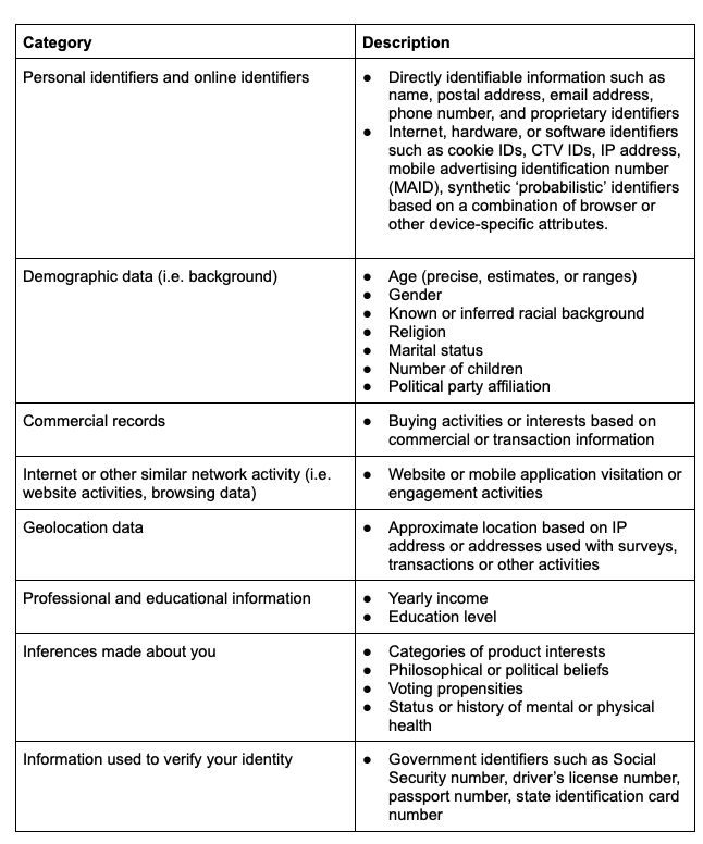 The Categories of ‘Sensitive’ Personal Information We Sell or License
