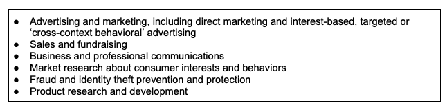 The Purposes For Our Customer's Use of Sold or Licensed Personal Information